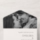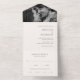 Invitación moderna Todo en una boda con un diseño sencillo y minimalista con los detalles de su boda en alineación con la foto favorita en la parte superior. Todos los elementos de diseño están en gris sobre un fondo de marfil neutro y pueden cambiarse en la herramienta de edición de diseño. Esta moda "sellar y enviar" todo en una sola invitación a la boda con un diseño minimalista y elegante va bien con cualquier estilo de boda contemporáneo.