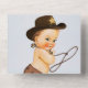 Te encantará este lindo bebé vaquero en un escenario con una herradura dorada. Ideal para una fiesta de bebé.