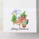 Aquí hay una horizontal, alegremente blanca, Feliz Navidad todo en una tarjeta de invitación. Mi dibujo a mano alzada de un chile divertido y provocativo tomando el sol entre una sombrilla, un pequeño árbol de navidad y algunos regalos envueltos está en el centro de este diseño. Dibujé mi arte con lápices de colores en papel a mano. Por lo tanto, esta obra de arte es única y original.