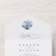 Esta llamativa invitación a la boda, que se lleva a cabo todo en uno, tiene la elegancia atemporal de Chinoiserie en una paleta clásica azul y blanca con motivos de árboles llamativos y linternas y diseños depurados. La colección presenta motivos sofisticados y delicados inspirados en la porcelana tradicional china, creando una estética refinada y romántica. Desde invitaciones bellamente diseñadas hasta la coordinación de los suministros y la decoración fiestas, cada detalle está diseñado cuidadosamente para dar un sentido de gracia y encanto a su día especial. Personalice cada pieza con sus detalles para una experiencia boda verdaderamente única. Busque ID1094 para ver todos los productos de coordinación de esta colección.