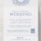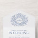 Invitación Todo En Uno Círculo blanco azul boda de hojas QR