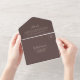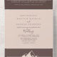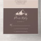 Este claro boda de boho de montaña, todo en una sola invitación, es perfecto para un boda rústico. El diseño presenta una idílica montaña color beige acuático. Guarde el papel incluyendo más detalles en la invitación en lugar de en una tarjeta separada.