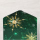 Invitación Todo En Uno Coches de Navidad dorados sobre fondo verde