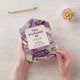 Invitación Todo En Uno Código QR Acuarela Orquídea Púrpura Boda