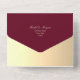 Esta barroca y dorada invitación a la boda es la mezcla perfecta de elegancia rica y practicidad moderna. El lujoso fondo rojo profundo con un adorno dorado monocasco crea un aspecto real y atemporal, mientras que el diseño plegable hace las veces de su propio sobre para un envío fácil. En el interior, la sección RSVP incluye un escaneado código QR que enlaza directamente con el sitio web de su boda para obtener respuestas en línea instantáneas. Una elección sofisticada y conveniente para parejas que organizan una celebración formal, clásica o boda de lujo.