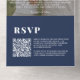 Sencillo y Minimalista código QR azul de la marina RSVP Código Sobreposición de Boda de guiones fotográficos todo en una sola invitación.