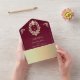 Esta invitación de boda de un solo cuerpo en estilo barroco de color burdeos y dorado es la mezcla perfecta de elegante riqueza y practicidad moderna. El fondo rojo profundo y lujoso con un marco de monograma dorado ornamentado crea un aspecto regio y atemporal, mientras que el diseño plegable sirve también como sobre para un fácil envío. En el interior, la sección de RSVP cuenta con un código QR escaneable que enlaza directamente con el sitio web de la boda para obtener respuestas en línea instantáneas. Una elección sofisticada y conveniente para las parejas que organizan una celebración de boda formal, clásica o de lujo.