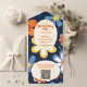 Invitación Todo En Uno Código QR Boho Boda floral retro