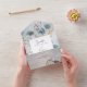 DISPONIBLE CON O SIN CÓDIGO QR PARA ESCAPAR EN LA ZONA RSVP O CON O SIN OPCIONES PARA CENAR. Este diseño es sencillo y hermoso, con la última inicial del novio o de la novia en la solapa exterior. Este diseño presenta flores silvestres polvorientas de color azul bohemio con follaje marrón marrón. También agregue un código QR personalizado a su invitación para que los visitantes puedan acceder rápidamente a su sitio Web boda para obtener detalles, direcciones, opciones de menú y más, o agregar la dirección URL Web del Registro de regalos. Las invitaciones todo en uno personalizadas son una combinación única de una invitación personalizado bien impresa y una postal RSVP fácil de desgarrar. ¡Y son tan fáciles de usar! Simplemente se pliega, después sella la solapa de atrás con los tres pegatinas claros incluidos y el correo. Y cuando sus invitados reciben la invitación de su personalizado, ¡simplemente sacan la tarjeta RSVP perforada y la envían de vuelta al correo!