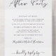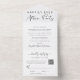 Huida elegante o anuncio de boda privada y recepción, todo en una invitación para anunciar su matrimonio a amigos y familiares y para invitarlos a una recepción posterior a la boda o fiesta de celebración. "Fiesta Feliz para Siempre" está escrito en una mezcla de tipografía simple y una escritura moderna. Ingrese la URL del sitio web de su boda para crear un código QR para que sus invitados respondan en línea y obtengan información sobre alojamiento, direcciones, fiestas de la noche anterior y otros detalles. Una tarjeta postal de respuesta desprendible proporciona una respuesta conveniente y ecológica sin necesidad de sobre de sus invitados.