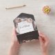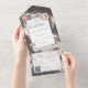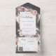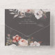 DISPONIBLE CON O SIN CÓDIGO QR O CON O SIN OPCIONES DE SELECCIÓN DE CENAS. Suave y romántica, este diseño presenta un color rosa rosa rosa rubor, vino de marsala, flores rojas y blancas sobre un suave fondo negro de carbón vegetal craqueado con salpicaduras de color blanco. Agregue un código QR a su invitación para que los visitantes puedan acceder rápidamente a su sitio Web boda para obtener detalles, direcciones, opciones de menú y más, o agregue la dirección URL Web del Registro de regalos. Las invitaciones todo en uno personalizadas son una combinación única de una invitación personalizado bien impresa y una postal RSVP fácil de desgarrar. ¡Y son tan fáciles de usar! Simplemente se pliega, después sella la solapa de atrás con los tres pegatinas claros incluidos y el correo. Y cuando sus invitados reciben la invitación de su personalizado, ¡simplemente sacan la tarjeta RSVP perforada y la envían de vuelta al correo!
