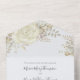 Este diseño presenta un modelo de invitación de boda elegante y moderno de rose marfil todo en uno, con elementos de acuarela botánica rústica, flor floral minimalista simple crema, código QR de bajo presupuesto, sello elegante y respuesta RSVP, hojas de suculentas en verde salvia country, boho tendencia en línea respuesta blanca, con un estilo de jardín boho champán otoño, y peonía chic única de primavera, estilo de algodón marfil champán