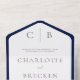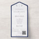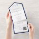 Invitación Todo En Uno Código QR de monograma mínimo azul y blanco de la