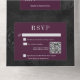 Invitación Todo En Uno Código QR de satén floral de vino negro gótico osc