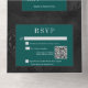 Invitación Todo En Uno Código QR de satén floral oscuro gótico negro y Ve