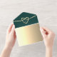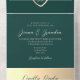 Presentamos nuestra sofisticada invitación a una boda verde esmeralda, donde la elegancia se une a la modernidad. Con las iniciales de los monogramas de la novia y el novio delicadamente enclavados en el corazón de una cuerda dorada, esta invitación exuda un encanto intemporal. Dósele la vuelta para revelar una imagen personalizado de la pareja, agregando un toque personal a su celebración. Completada con un sencillo guión caligráfico y adornada con un código QR para RSVP y acceso a sitios web, esta invitación combina perfectamente la tradición con la comodidad contemporánea. Captura la esencia de tu historia de amor con esta elegante invitación, donde cada detalle refleja la singularidad de tu unión.