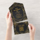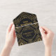 Invitación Todo En Uno Código QR Diamante Negro y Dorado Arte Deco Boda