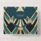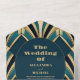 Invitación Todo En Uno Código QR Elegante Boda Art Deco Azul y Oro