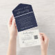 Invitación Todo En Uno Código QR Elegante para Recepción de Boda en Azul