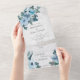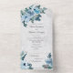 Invitación Todo En Uno Código QR Floral Azul Dusto