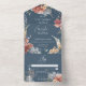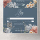 DISPONIBLE CON CÓDIGO QR O CON O SIN OPCIONES DE CENA. Elegancia y sencillez, con un toque romántico, hacen única esta invitación a la boda. Un suave fondo azul oscuro y polvoriento crea el escenario de esta invitación, rodeada por un bonito jardín floral de rosa polvoriento, crema, amarillo pálido y verde azulado. Creado por Simply Farmhouse Press.