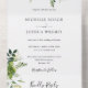 Esta invitación de boda todo en uno presenta vegetación botánica que cae a través de tipografía elegante. La invitación incluye una tarjeta de RSVP perforada con un código QR. Diseñado por Thisisnotme©