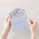 DISPONIBLE CON O SIN CÓDIGO QR PARA EXAMINAR EN EL ÁREA RSVP. Este diseño tiene hermosas flores blancas con capullos perincheros, rodeadas de una suave vegetación. El diseño floral se sitúa sobre un suave fondo perwinkle. Agregue un código QR a su invitación para que los visitantes puedan acceder rápidamente a su sitio Web boda para obtener detalles, direcciones, opciones de menú y más, o agregue la dirección URL Web del Registro de regalos. Las invitaciones todo en uno personalizadas son una combinación única de una invitación personalizado bien impresa y una postal RSVP fácil de desgarrar. ¡Y son tan fáciles de usar! Simplemente se pliega, después sella la solapa de atrás con los tres pegatinas claros incluidos y el correo. Y cuando sus invitados reciben la invitación de su personalizado, ¡simplemente sacan la tarjeta RSVP perforada y la envían de vuelta al correo!