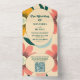 Invitación Todo En Uno Código QR Groovy Retro Boda Rosa y Oro