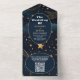 Invitación Todo En Uno Código QR Media Luna Celeste Boda Dorada