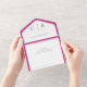 DISPONIBLE CON O SIN CÓDIGO QR PARA SCA EN EL ÁREA RSVP. Un diseño sobrio y elegante con un toque moderno, con un fondo rosa fucsia de dos tonalidades y blanco. Agregue un código QR a su invitación para que los visitantes puedan acceder rápidamente a su sitio Web boda para obtener detalles, direcciones, opciones de menú y más, o agregue la dirección URL Web del Registro de regalos. Las invitaciones todo en uno personalizadas son una combinación única de una invitación personalizado bien impresa y una postal RSVP fácil de desgarrar. ¡Y son tan fáciles de usar! Simplemente se pliega, después sella la solapa de atrás con los tres pegatinas claros incluidos y el correo. Y cuando sus invitados reciben la invitación de su personalizado, ¡simplemente sacan la tarjeta RSVP perforada y la envían de vuelta al correo! Creado por Simply Farmhouse Press.