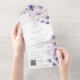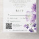 Invitación Todo En Uno Código QR morado blanco floral de Boho