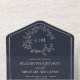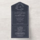 Invitación Todo En Uno Código QR Navy Escudo de Leafy Azul Monograma Boda