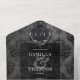 DISPONIBLE CON O SIN CÓDIGO QR O OPCIONES DE SELECCIÓN DE CENAS. Entrar en un mundo de oscura elegancia con nuestra cautivadora invitación a una boda gótica. Esta invitación, enmarcada en un impresionante papel pintado negro adamascado, desprende un aire de misterio y encanto intemporal. En la parte superior, una vintage morada, gris y cartucha negra cuelga las primeras iniciales de la pareja, añadiendo un toque de esplendor absoluto al diseño. Con un estilo antiguo que rebosa de sofisticación, esta invitación es una combinación perfecta de encanto antiguo y encanto contemporáneo. Las iniciales de la pareja también se repiten bellamente en el exterior, preparando el escenario para una celebración que promete ser tan encantadora como inolvidable. Aprovecha el encanto del pasado e invita a tus invitados a presenciar un amor que trasciende el tiempo con esta cautivadora invitación gótica a la boda. Creado por Simply Farmhouse Press.