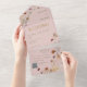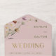 DISPONIBLE CON O SIN CÓDIGO QR. Este diseño presenta ramos de flores silvestres en tonos tierra sobre un fondo polvoriento rosa. Sencillo, moderno y elegante. Agregue una dirección URL de código QR a su invitación para que los visitantes puedan acceder rápidamente a su sitio Web boda para obtener detalles, direcciones, opciones de menú y más, o agregue la dirección URL Web del Registro de regalos. Las invitaciones todo en uno personalizadas son una combinación única de una invitación personalizado bien impresa y una postal RSVP fácil de desgarrar. ¡Y son tan fáciles de usar! Simplemente se pliega, después sella la solapa de atrás con los tres pegatinas claros incluidos y el correo. Y cuando sus invitados reciben la invitación de su personalizado, ¡simplemente sacan la tarjeta RSVP perforada y la envían de vuelta al correo!