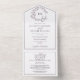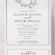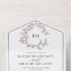 Invitación Todo En Uno Código QR Plum Escudo Morado Leafy Monograma Boda