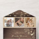 Establece el tono de tu día especial con esta invitación de boda rústica de madera todo en uno, que combina hermosamente el romance y la comodidad moderna. Con luces de cuerda brillantes, elegantes acentos florales dorados y una sección de RSVP incorporada con un código QR escaneable, este diseño ofrece encanto y funcionalidad.