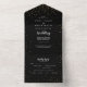 Invitación Todo En Uno confetti de efecto metalizado dorado | Boda negro