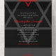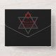 Invitación de Bar Mitzvah de la Estrella de David negra y roja y tarjeta de confirmación todo en una. Los símbolos de la Estrella de David se pueden eliminar en la herramienta de diseño si no los desea o si solo quiere algunos de ellos. Los colores de esta invitación son negro, rojo y gris. Colores clásicos que son masculinos, elegantes y con estilo. Todos los colores de esta invitación también se pueden cambiar en la herramienta de diseño.