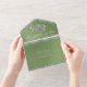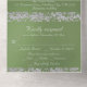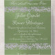 Este diseño romántico presenta un elegante fondo verde sabio con bordes purpurinas, un delicado corazón plateado entrelazado, detalles para el evento en un guión elegante. También disponible con diferentes fondos de color para los colores de los temas bodas. (El Purpurina se simula en la obra de arte). Diseñado para coordinar con la colección de Bodas "Dos se convertirán en un corazón, palomas y Purpurinas". Para cambiar detalles, haga clic en "Personalizar". Para mover el texto o cambiar el tamaño del texto, el tipo de letra o el color, haga clic en "Haga clic en el personalizar"