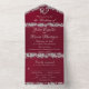 Invitación Todo En Uno Corazón romántico y Purpurina en Borgoña