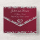 Este diseño romántico presenta un fondo burdeos con bordes purpurinas, un delicado corazón plateado de desplazamiento, guión en fuentes elegantes. Perfecto para la boda sencilla a la más elegante. También disponible con diferentes fondos de color para los colores de los temas bodas. (El Purpurina se simula en la obra de arte). Diseñado para coordinar con la colección "Romantic Scroll Hearts & Purpurina Boda". Para cambiar detalles, haga clic en "Personalizar". Para mover el texto o cambiar el tamaño del texto, el tipo de letra o el color, haga clic en "Haga clic en el personalizar"