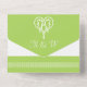Trae un toque de elegancia a tu evento con esta invitación de boda todo en uno y tarjeta RSVP. En el interior se encuentra un corazón de tejido celta blanco sobre un fondo peripunto pastel sobre una sección con un texto de muestra que se puede personalizar para tu día especial. La sección inferior de la invitación incluye una pieza extraíble de tamaño postal que tiene un ejemplo de texto RSVP sentado sobre un borde verde peripunto con un patrón de tejido celta hecho de corazones entrelazados que decoran el fondo. En el exterior, se puede encontrar un borde similar de tejido celta en peridot debajo de las áreas donde se agregarían sellos, parámetros y direcciones de retorno tanto para la invitación como para la sección RSVP que se puede devolver. La solapa utilizada para doblarse y sellar la tarjeta tiene el corazón de tejido celta más grande sobre un fondo verde pastel con un conjunto de iniciales que se pueden personalizar para un toque personal final. No olvide visitar el resto de los equipos Celtic Weave Hearts in Peridot para otros productos de coordinación, incluyendo etiquetas de direcciones de retorno.