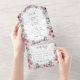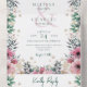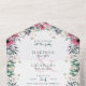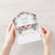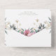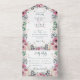 Este diseño presenta un marco suave de flores rosadas y blancas, y vegetación. Las invitaciones personalizadas All-In-One son una combinación única de una invitación personalizada bellamente impresa con una tarjeta postal de respuesta con perforaciones fáciles de arrancar. ¡Y son muy fáciles de usar! Simplemente dobla, luego sella la solapa trasera con las tres etiquetas transparentes incluidas y envíalas por correo. ¡Y cuando tus invitados reciban tu invitación personalizada, simplemente arrancan la tarjeta de respuesta perforada y te la devuelven por correo!