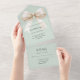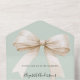 Un fondo verde salado, decorado con una gran proa beige y crema. Personalice y agregue nombres, detalles del fiesta, fecha RSVP, dirección de devolución y nombre.