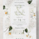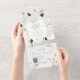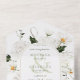 DISPONIBLE CON O SIN CÓDIGO QR PARA ESCALAR EN EL ÁREA RSVP. Este diseño presenta un marco suave de margaritas, flores blancas y vegetación. Agregue un código QR a su invitación para que los visitantes puedan acceder rápidamente a su sitio Web boda para obtener detalles, direcciones, opciones de menú y más, o agregue la dirección URL Web del Registro de regalos. Las invitaciones todo en uno personalizadas son una combinación única de una invitación personalizado bien impresa y una postal RSVP fácil de desgarrar. ¡Y son tan fáciles de usar! Simplemente se pliega, después sella la solapa de atrás con los tres pegatinas claros incluidos y el correo. Y cuando sus invitados reciben la invitación de su personalizado, ¡simplemente sacan la tarjeta RSVP perforada y la envían de vuelta al correo!