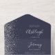 Invitación Todo En Uno Dark Blue Silver Glitter QR Code Wedding