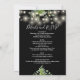 Este elegante eucalipto verde luces botánicas de cuerda para la invitación a la boda en blanco y negro se puede personalizar con su información en tipografía de moda con toda su información especial del día de la boda al revés, incluyendo su RSVP, alojamiento y detalles adicionales. Diseñado por Thisisnotme©