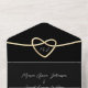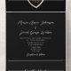 Comparte los detalles de tu boda con un estilo elegante con esta invitación a la boda todo en uno en blanco y negro. Con un romántico corazón de cuerda dorada, iniciales personalizadas, un elegante fondo negro y un escandaloso código QR para RSVP fáciles, este diseño combina la comodidad moderna con la sofisticación atemporal. Perfecto para las parejas que buscan una suite boda de diseño y sobriedad.