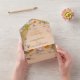 Este diseño presenta un suave borde de melocotón, verde y dorado sobre un suave arco de color marrón sobre un fondo de melocotón. Las invitaciones todo en uno personalizadas son una combinación única de una invitación personalizado bien impresa y una postal RSVP fácil de desgarrar. ¡Y son tan fáciles de usar! Simplemente se pliega, después sella la solapa de atrás con los tres pegatinas claros incluidos y el correo. Y cuando sus invitados reciben la invitación de su personalizado, ¡simplemente sacan la tarjeta RSVP perforada y la envían de vuelta al correo!