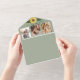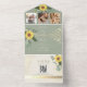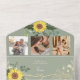 Brillante y rústico, esta invitación a la boda todo en uno con girasol y eucalipto le aporta un cálido y alegre calor a su día especial. Con girasoles amarillos vibrantes, ramas doradas y acentos verdes suaves sobre un fondo sabio, este diseño incluye espacio para 3 fotos personales y un código QR para RSVP. No se necesitan sobres, sólo personalizar, sellar y enviar una experiencia de invitación encantadoramente eficiente.